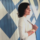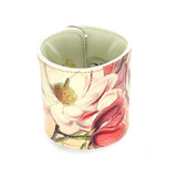 Utsiden av armbåndet er dekorert, inspirert av Magnolia blomster. Hvit innside.