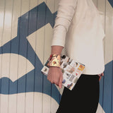 Glidelåslomme på armbåndets innside. To festemuligheter av metall