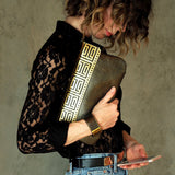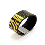 The outside of the bracelet is inspired by Greek ornaments. Inside in black metallic colour.